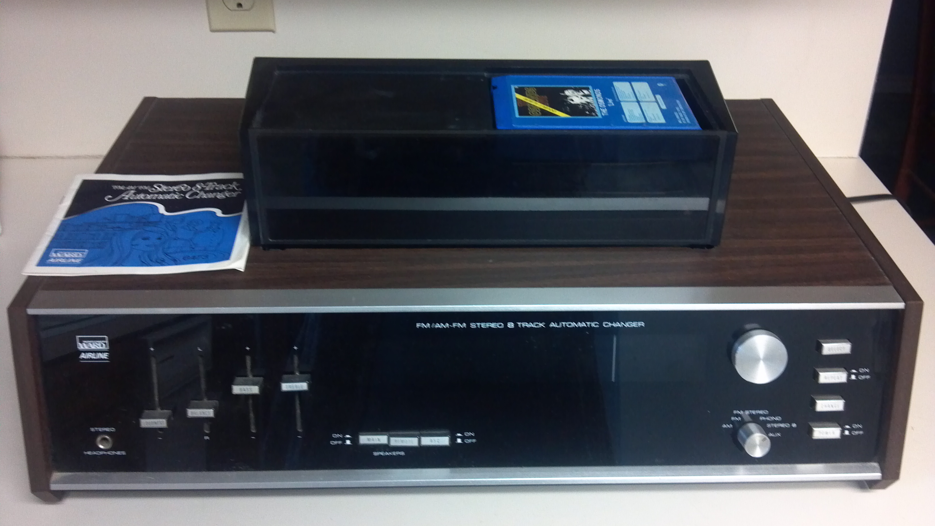 Montgomery Ward Airline 6473 - This little puppy will play up to 6 cartridges at a time! We're working on putting up a little video so you can see it in action. This little baby can be yours for the very low price of $120 + S/H. And to get you started, we'll through in 6 tapes free. - Also comes with manual & speakers (speakers aren't show here, but in the video). To see the video of how the player works click here.